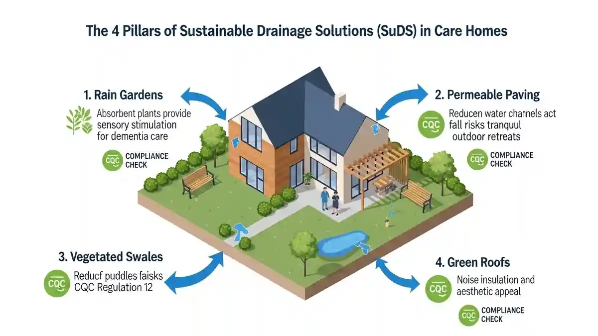 The future of sustainable drainage solutions CQC care home design is the integration of SuDS (Sustainable Drainage Systems). In Colindale, Policy EN18 of the Local Plan encourages SuDS to manage surface water runoff, which often plagues the surrounding area.